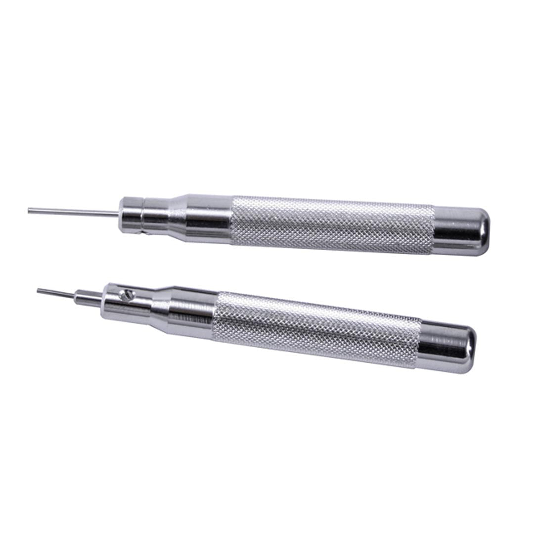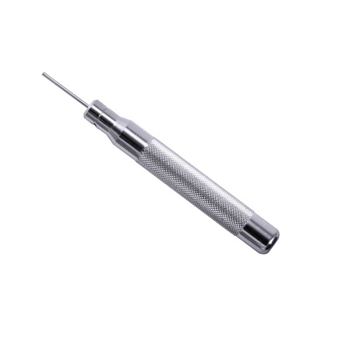 High impact plastic bracelet holder with more slots, including one which is extra wide for large bracelets. Allows the repairer to tap out pins or take out and replace pins easily. Punches are solid stainless steel with 0.8mm and 1.0mm and are replaceable. They are secured by set screw.