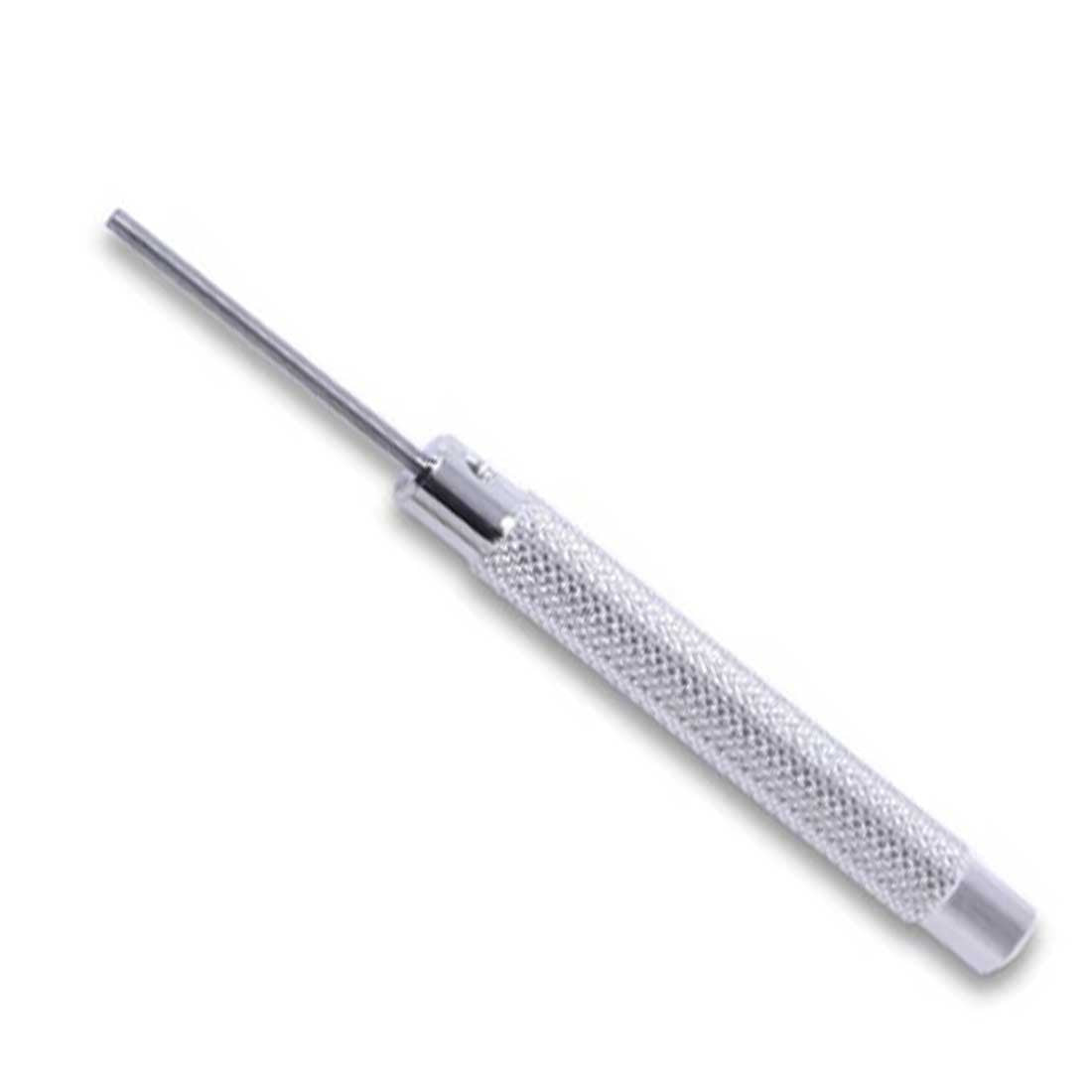 Bracelet holder with 3 stainless steel punches. High-impact plastic bracelet holder with more slots, including one which Is extra wide for large bracelets. Allows the repairer to tap out pins or take out and replace pins easily. Punches are solid stainless steel 0.8, 1.0, 1.2mm, and they are replaceable. They are secured by set screw.