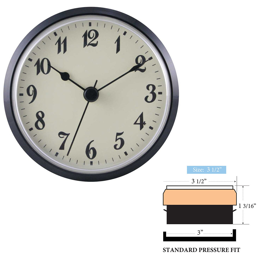 Clock Inserts, 3 1/2" Black Bezel, Ivory Arabic Dial