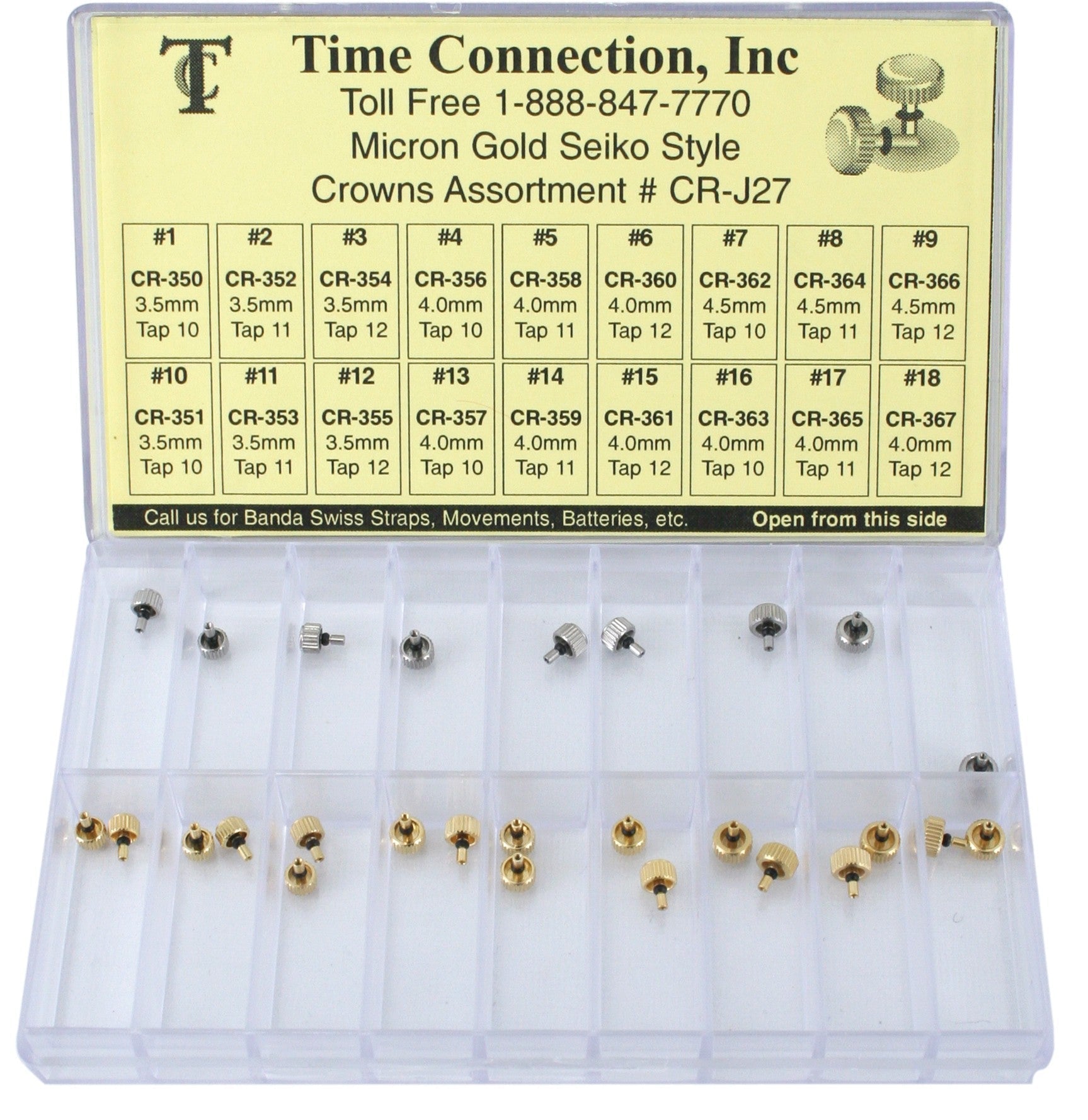 CR-J27, Micron Gold Seiko Style Crown Assortment (27 Pieces)