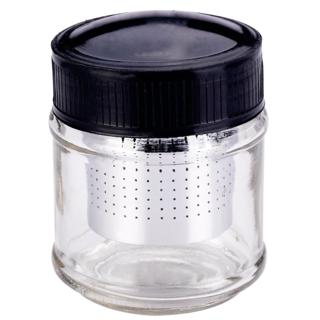 The perfect way to wash diamonds or other loose stones with alcohol. Features an inside perforated cup and metal lid to assure proper cleaning. Glass jar is 2 1/2in diameter and 2 1/4high.