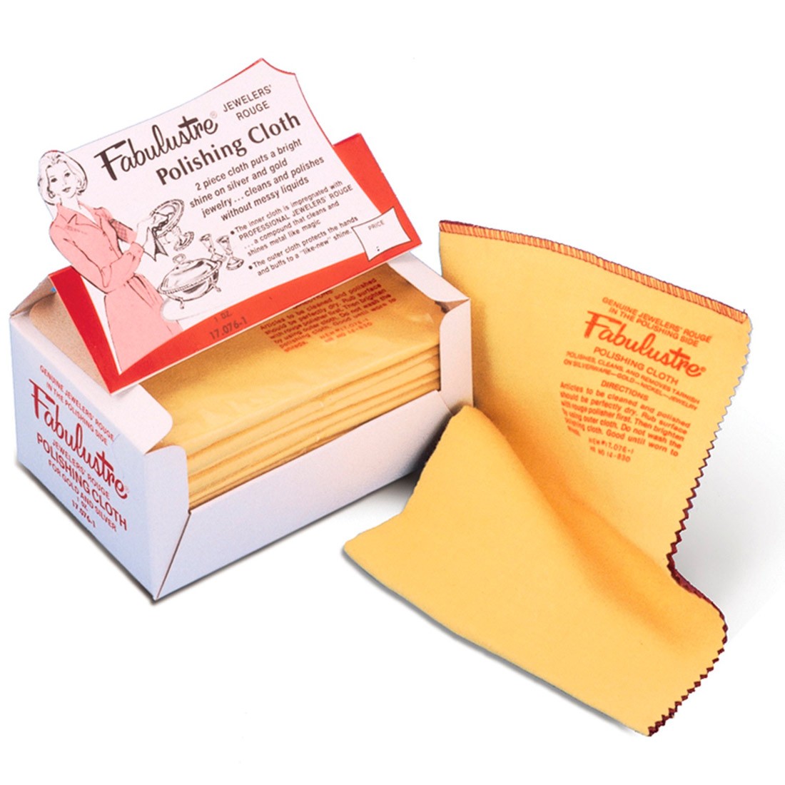 Keep hands clean when polishing with rouge! Double cloth_one side impregnated with jeweler rouge and the other side is a final polish cloth. Individually packed in plastic pouches. Sold individually or box of 12.