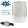 Our Pre-Cut Clear Protection plastic wrap Masking Tape Roll (250 Pieces) offers quick and easy peel-and-stick convenience for all watch makers and jewelers. Its clear protection tape is pre-cut, making it easy and effortless to use. Polishing up your most delicate pieces is a breeze with 250 pieces of this top-of-the-line tape!