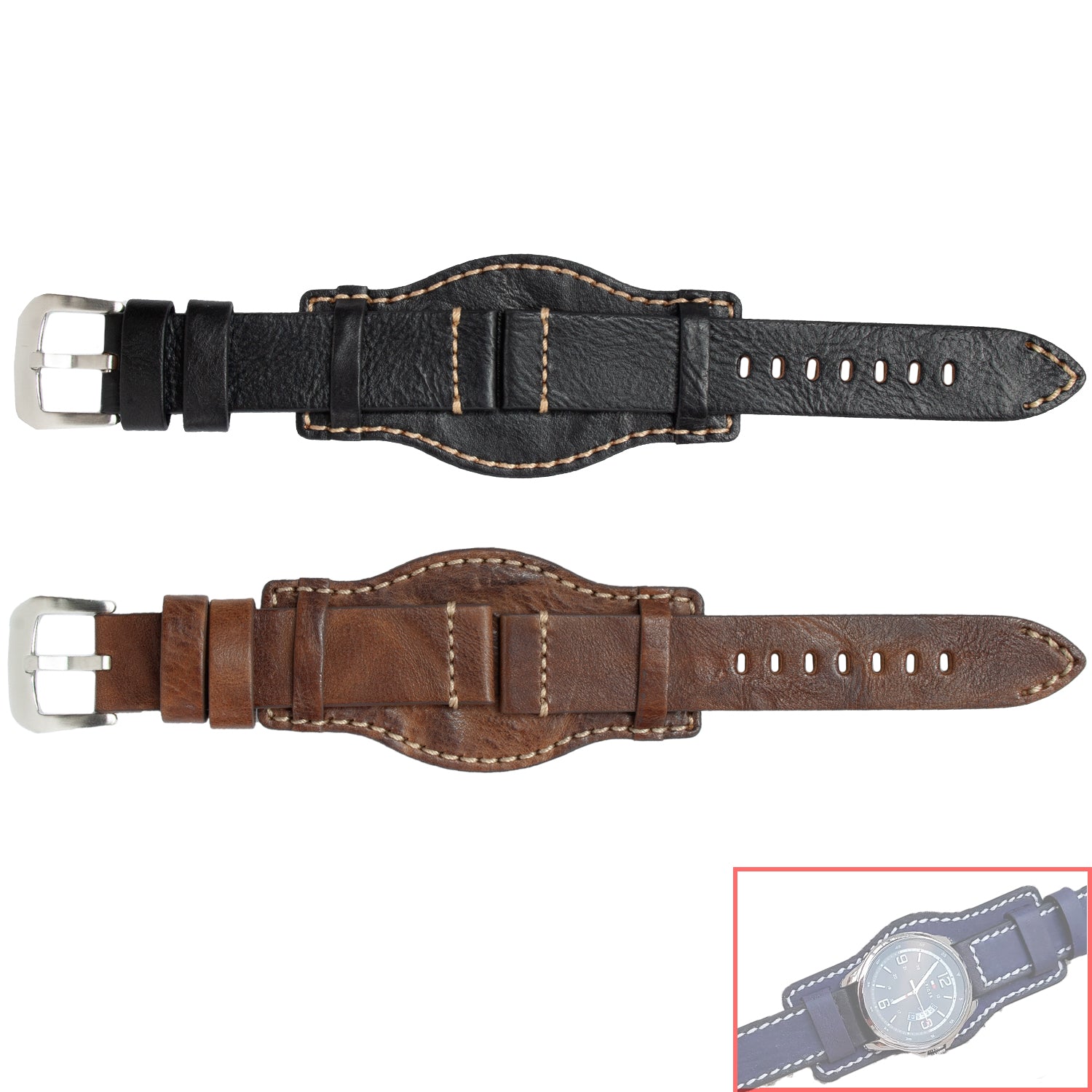VSB No. 801 Cuff Bracelet Fine Straps with White Stitch. Premium Grade Leather Cuff Bracelet Strap with Contrast Stitch, Genuine Leather. An Elegant and beautiful style that matches well with every timepiece.