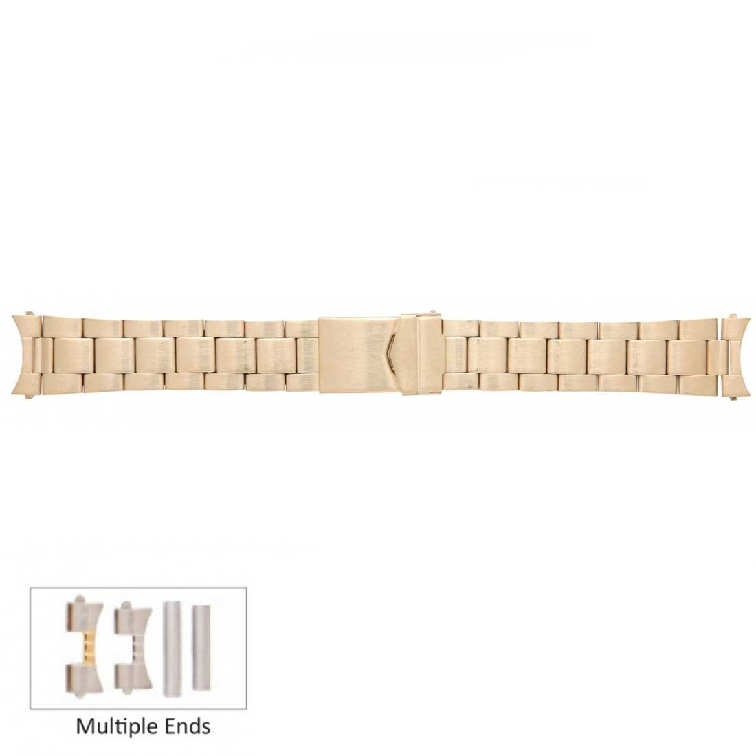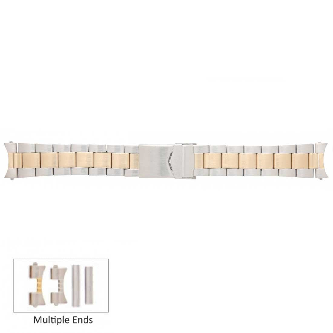 Banda Curved Ends: 18, 20mm, Straight Ends: 20, 22mm, Stainless Steel Folded Link Band Includes 4 Pair Multiple End Pieces