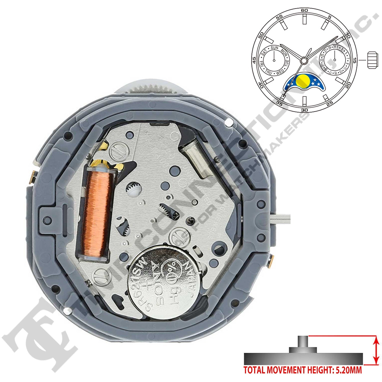 Miyota/Citizen LTD 6P20 3 Hands Japan Quartz Movement Ht. 5.20MM