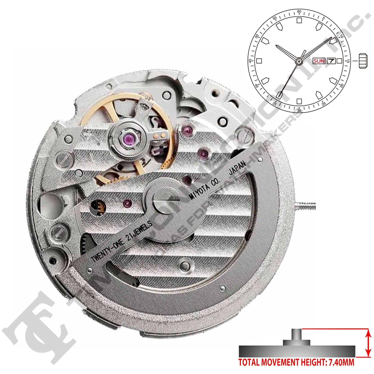 Miyota/Citizen LTD 820A Japan Automatic Movement Ht. 7.4MM