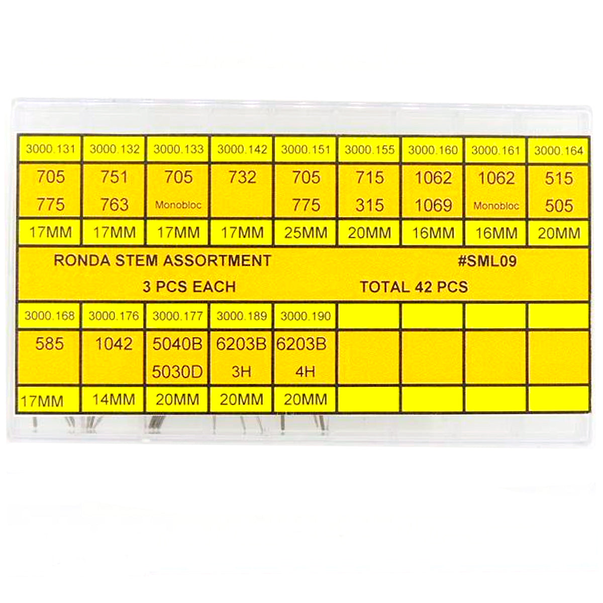 These Harley Ronda movement stems are an ideal replacement for your Ronda movement. These stems enable you to easily repair your watch. Furthermore, with these generic stems, you can avoid sending the watch to the service center, thereby reducing shipping and insurance costs. Assortment contains 13 sizes, with 3 of each of the following numbers.