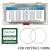 Assortment contains each envelope has 2 pieces of 49 popular sizes of crystal gaskets for a total of 98 pieces. Used for 1.0mm Thickness MG crystals