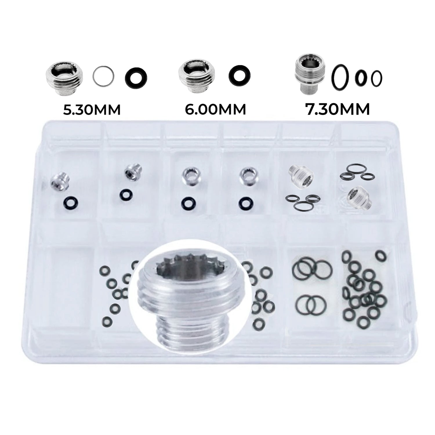 Assortment contains 2 sets of case tubes 5.30mm, 6.00mm and 7.30mm along with 12 tube gasket for the 530 and 600. Along with 18 insude tube gaskets and 6 outside tube gaskets for the 703 for a total of 54 pieces.