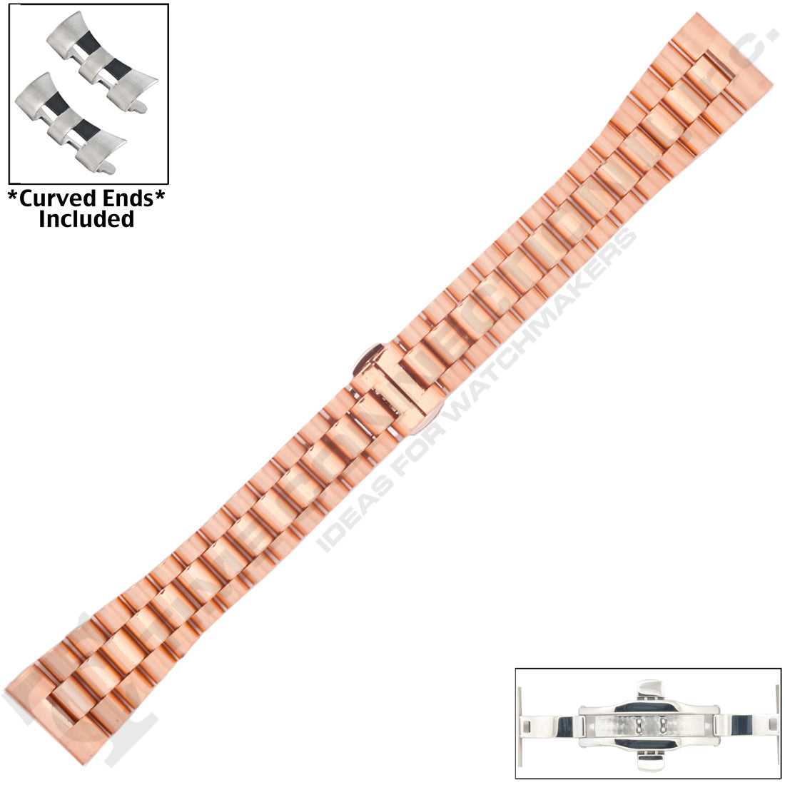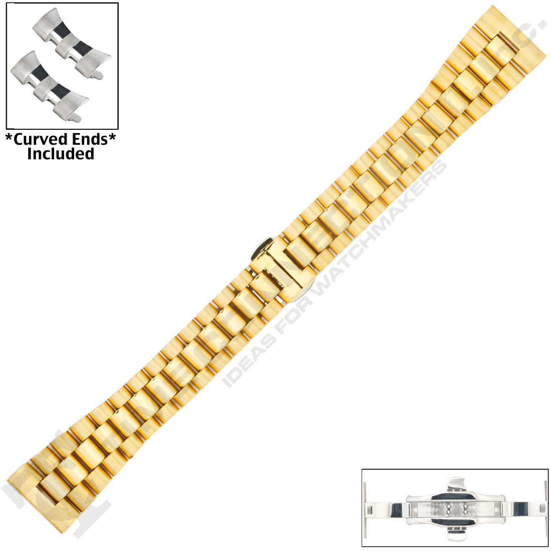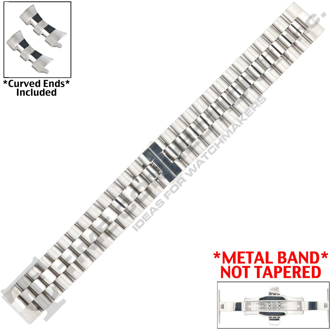 High Quality Swiss Finish Polish President Style Solid Stainless Steel Band with Straight or Curved Ends. This sturdy metal bands will blow your customer away with the quality and durability that it offers. The solid stainless steel will wear nicely and shine bright on just about any watch.