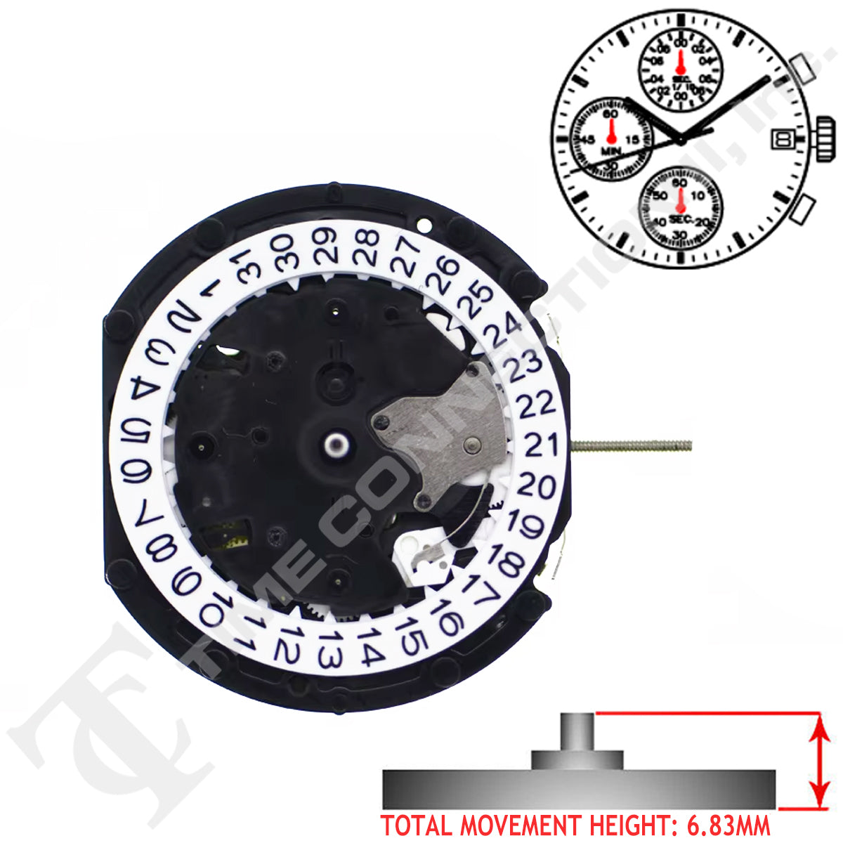 SUNON PE903 Chinese Quartz 3 Hands Multi Function Watch Movement Ht. 6.83mm