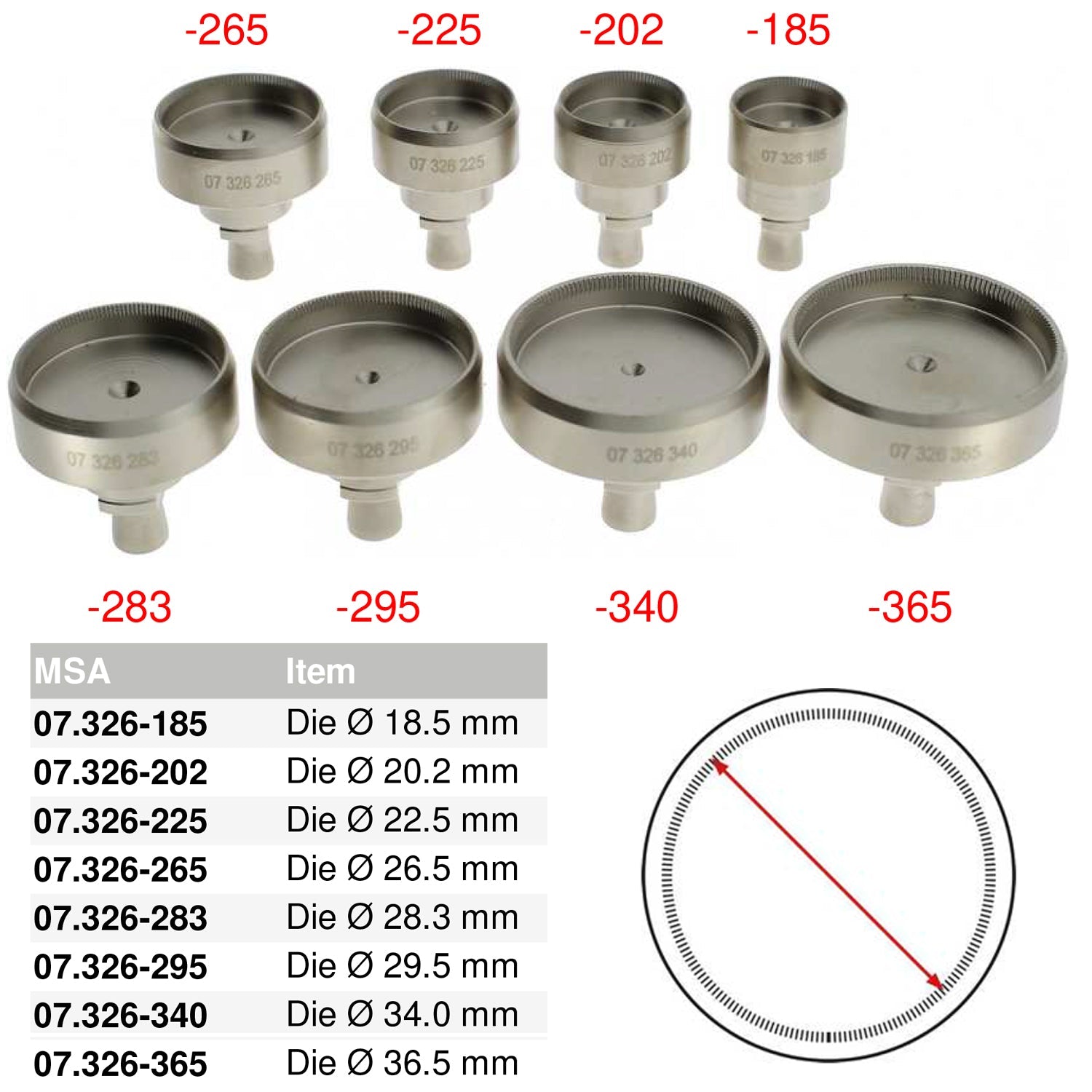 Dies Size Available: Ø18.5mm, Ø20.2mm, Ø22.5mm, Ø26.5mm, Ø28.3mm, Ø29.5mm, Ø34.0mm, Ø36.5mm