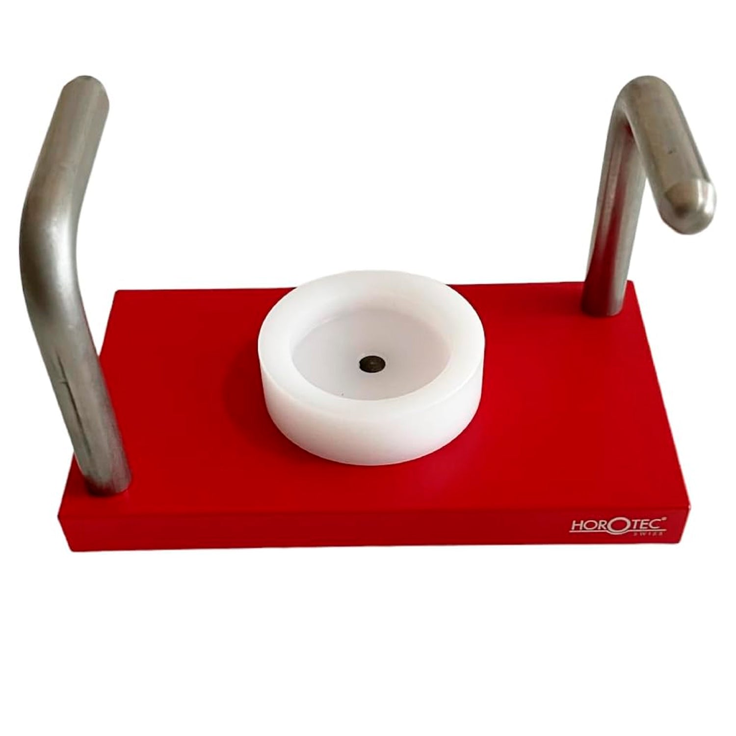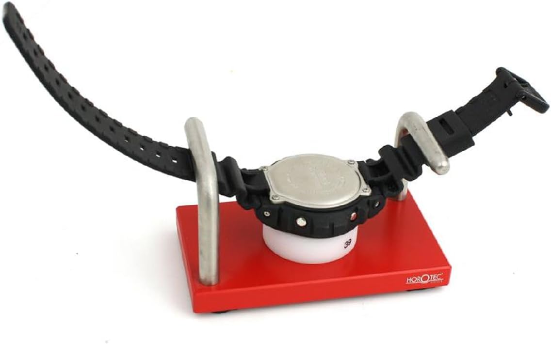 The Swiss Made Horotec MSA 10.007 Watch Holder is expertly designed to hold down watch straps, allowing for easy case work on wristwatches with built-in bands. Featuring 2 metal arms and rubber feet, this Swiss made tool offers a secure and stable base for precise watch repair.