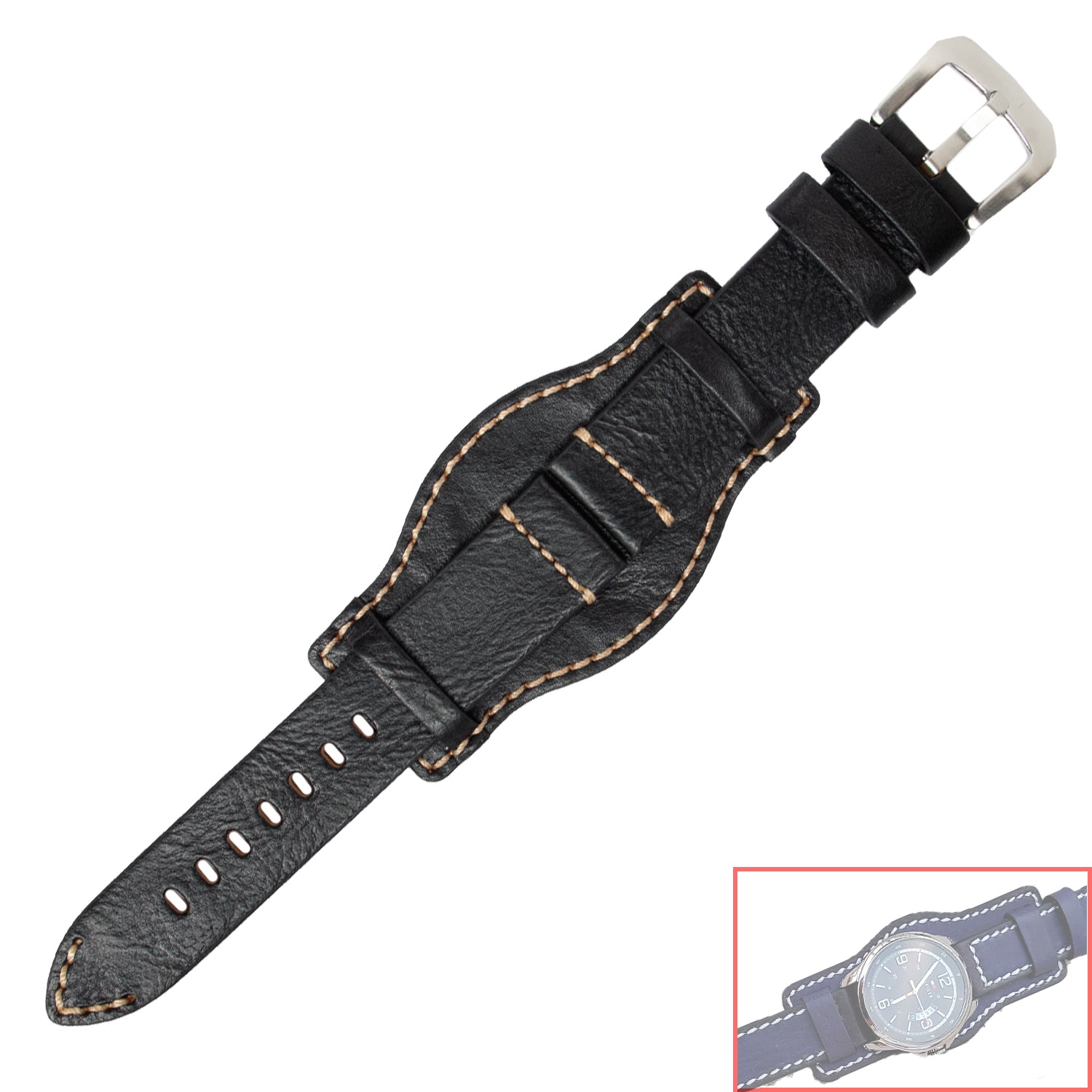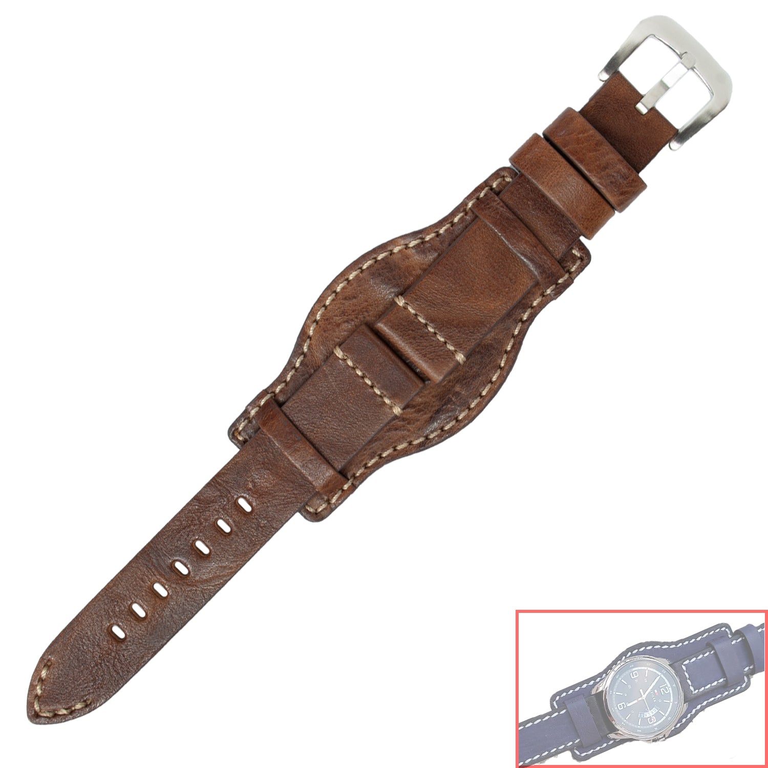 VSB No. 801 Cuff Bracelet Fine Straps with White Stitch. Premium Grade Leather Cuff Bracelet Strap with Contrast Stitch, Genuine Leather. An Elegant and beautiful style that matches well with every timepiece.