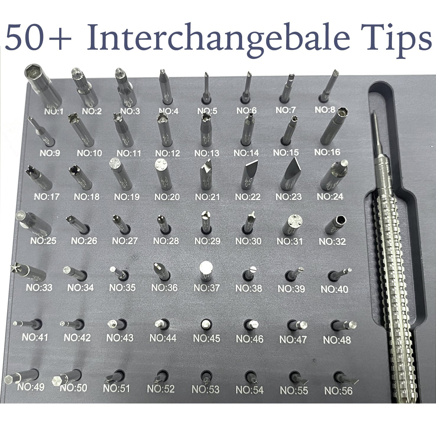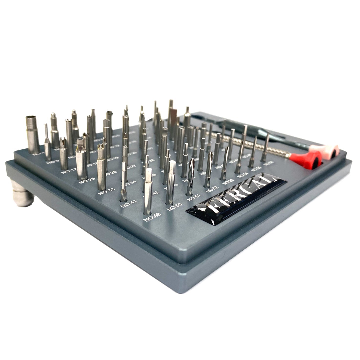 Experience precision watch repair with this Fercal Screwdriver Alloy Set. Made of alloy for longevity and durability, the interchangeable tips allow for precision repairs on Audemars Piguet, Rolex, Bulova, Hublot, IWC, Richard Mille, Bulgari and many more! The set include 56 pieces of professional-grade tools, you can easily interchange the tips which makes this the ultimate multi functional tool for case backs, tubes and pin pusher makes this a must have for all watchmakers alike!