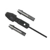 Pin vice with black finished adapter and round head. For manual use or on lathe or on drilling machine. Comes with 3 interchangeable chucks.
