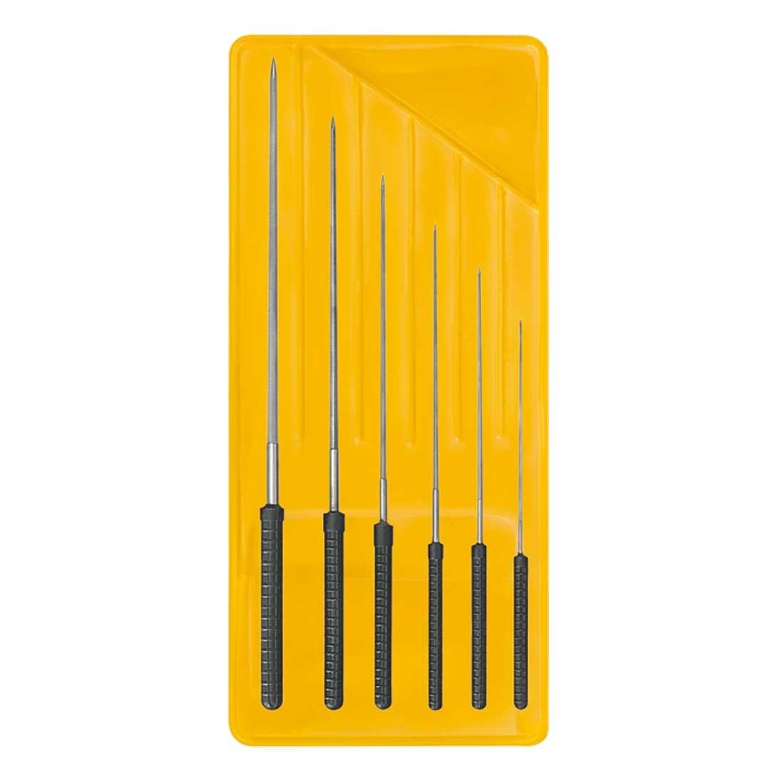 Assortment of 6 5-sided cutting broaches with plastic handle.