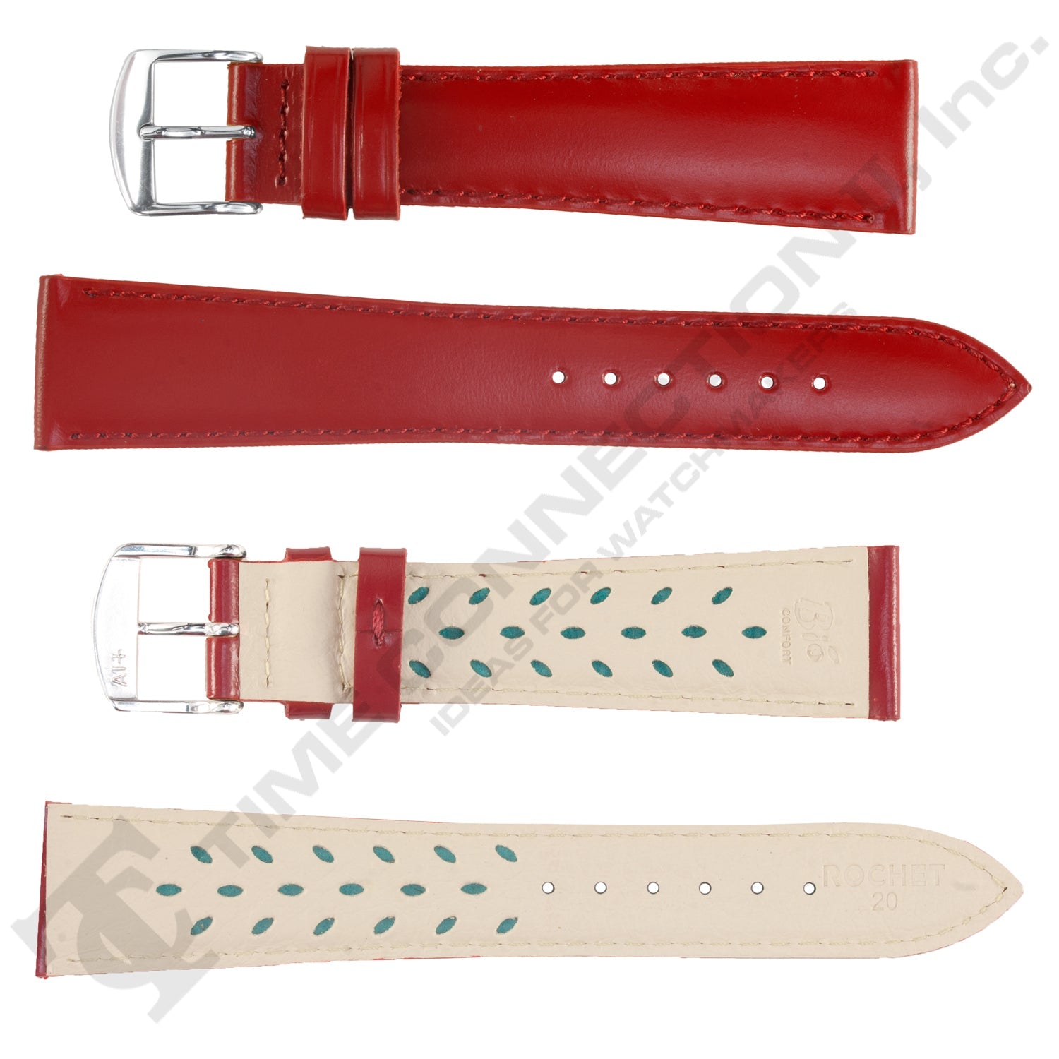 ROCHET leather bands has come up with an exclusive and revolutionary lining (25% less skin contact) and duty selected components to avoid any harm to skin (without chrome titanium tanning, water-based varnish solvent free, nickle-free aluminum buckle....), the Aeroconfort line is high recommended for the most allergic persons. Antiperspirant with perforations for improved skin ventilation, square padded leather bands.