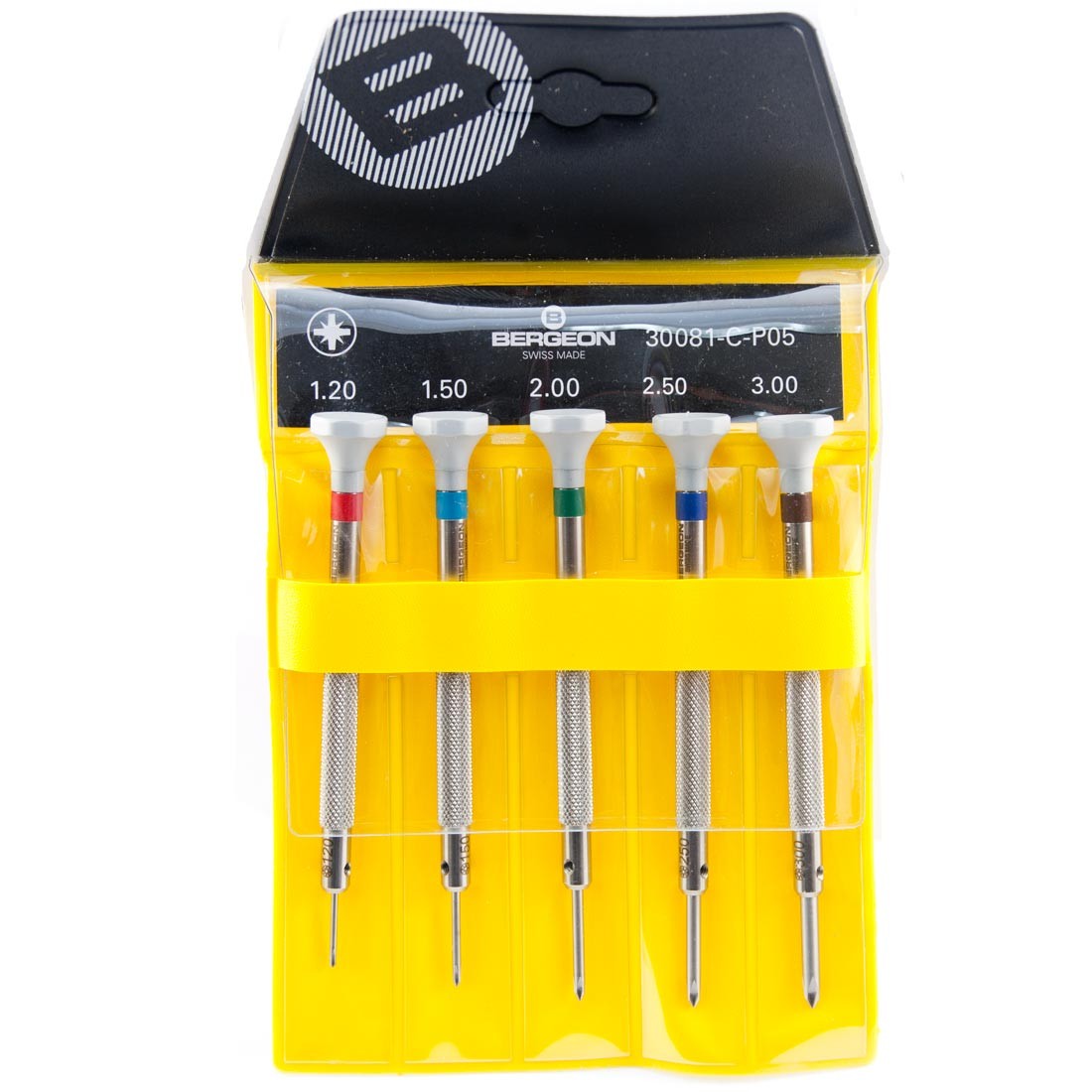 Bergeon 30081-C-P05 (5) Pieces S/S Phillips Screwdrivers in Pouch