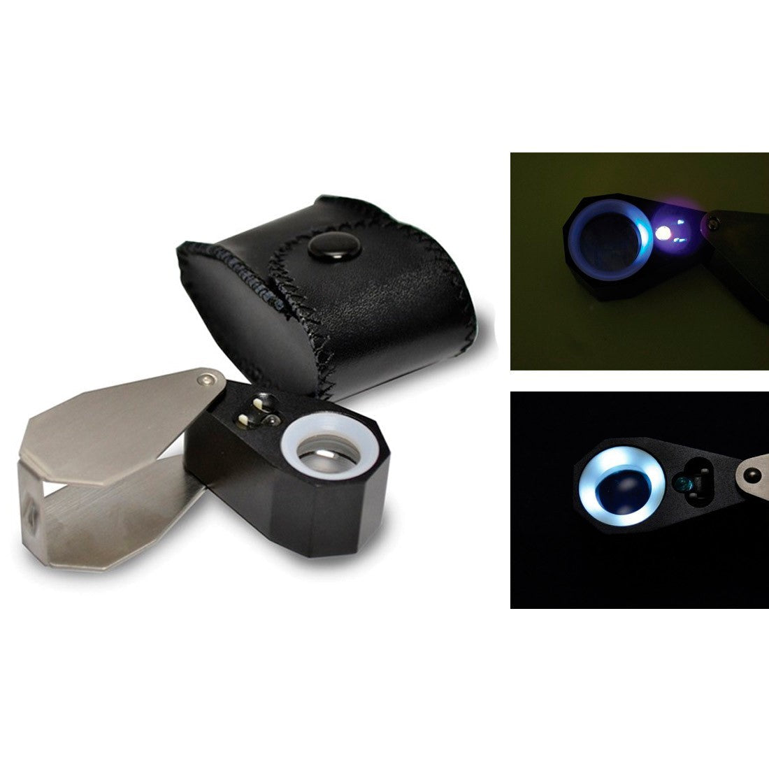for identifying fluorescence. 12.5mm lenses. Direct illumination eliminates shadows. Leather storage case included.
