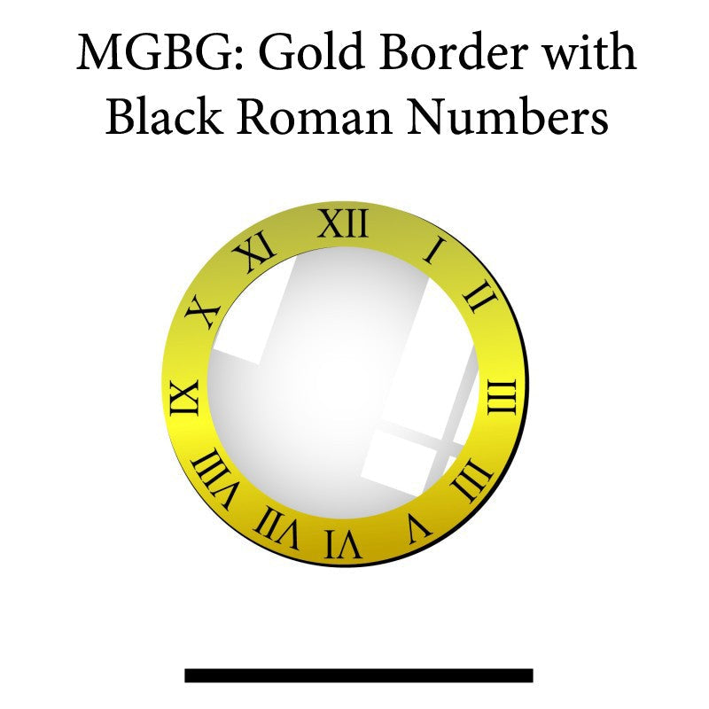 MGBG: Gold Border with Black Roman Numbers, Round Flat Mineral Glass Watch Crystals, 1.0mm Thickness Crystals
