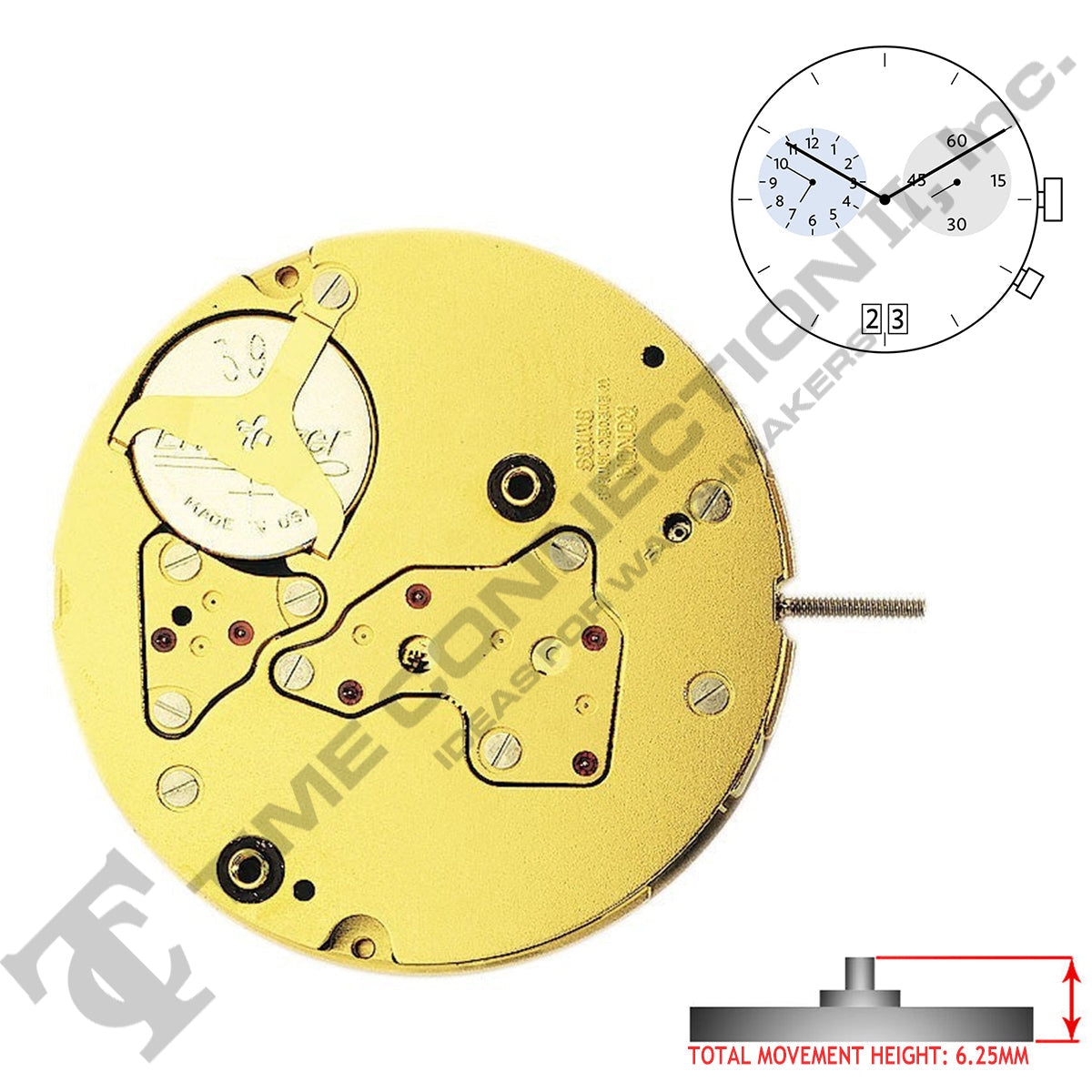 Harley Ronda 4120.B 2 Hands Swiss Made Quartz Movement Ht. 6.25MM