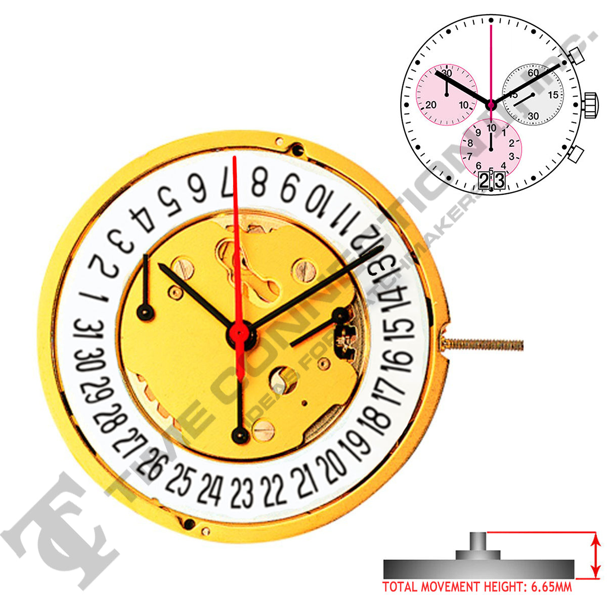 Overall Height 6.65MM Date at 4 (White Disc), Overall Height 6.65MM Date at 4 (Black Disc), Overall Height 6.65MM Date at 6, Overall Height 7.15MM (HCP2) Date at 6